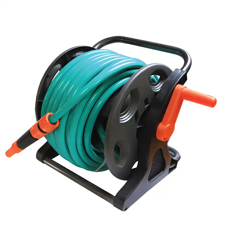 צינור “1/2, 20 מטר, מתז ידני, מתלה לקיר | אלגו השקיה גלגלת מתכת מורכבת הכוללת צינור 20 מטר עמיד במיוחד תוצרת איטליה ואביזרים.