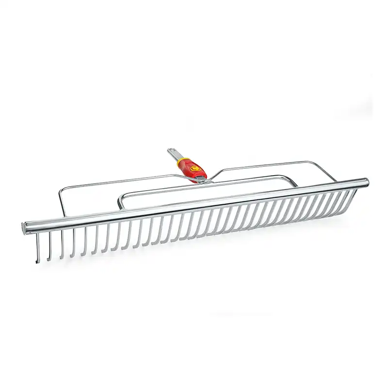 מגרפה רחבה במיוחד 60 ס”מ עם שיני מגלש ליישור שטח וגריפת משטחי דשא תוצרת וולף גרטן גרמניה.