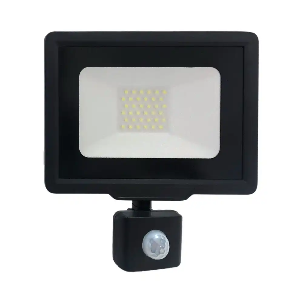 פנס הצפה שחור MIRAGE 30W IP65 עם חיישן – אור חם